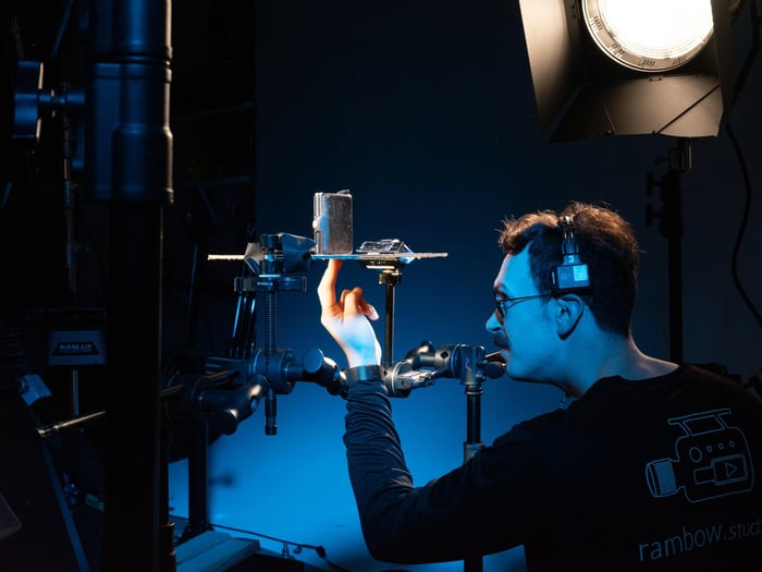 A Rambow Studio crew member used their own wallet as a stand in while we tweaked lighting on a shot
