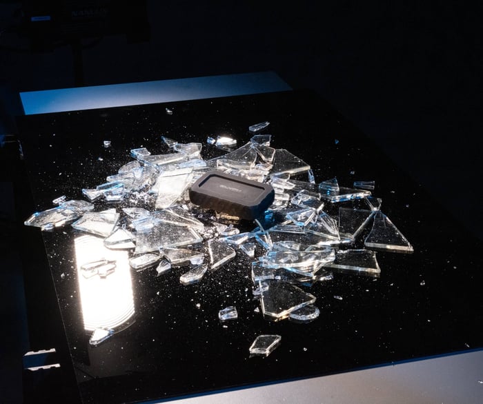 Andrew and the team at Direct Narrative worked on coming up with a concept that would allow us to showcase the drives in a real functional studio environment. This meant not just figuring out what was happening in front of the camera but coordinating various aspects behind the scenes ranging from booking the space to sourcing the perfect panes of glass for us to smash a drive through.
