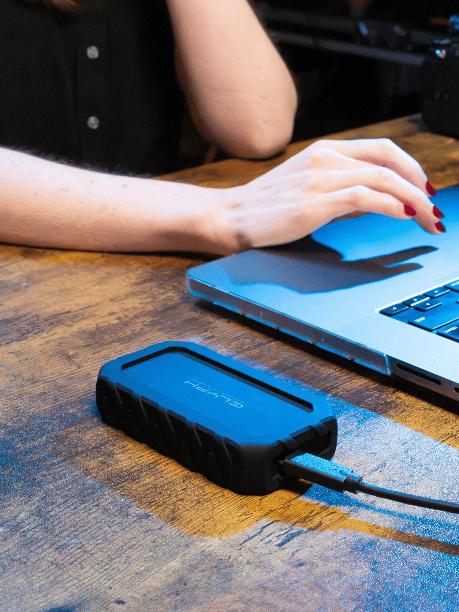 The Atom EX20 is a rugged, professional-grade SSD built for creators on the move. With USB-C connectivity, speeds up to 2,100 MB/s, increased thermal capacity, and real-time integrated health monitoring, Atom EX20 delivers performance and reliability that keeps pace with your creative needs – anywhere.